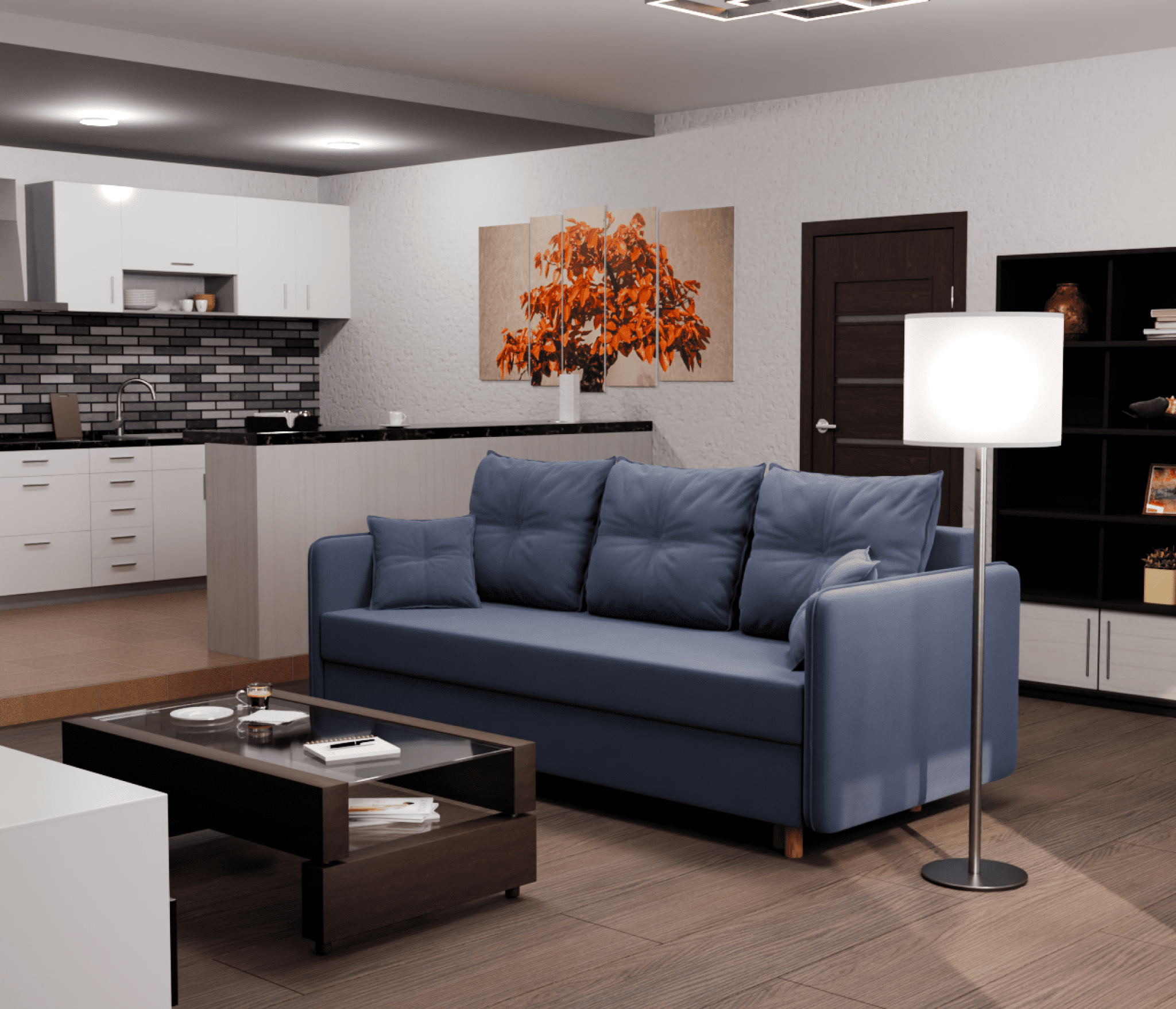 - Раскладной механизм позволяет быстро и без проблем превратить диван в удобную кровать.