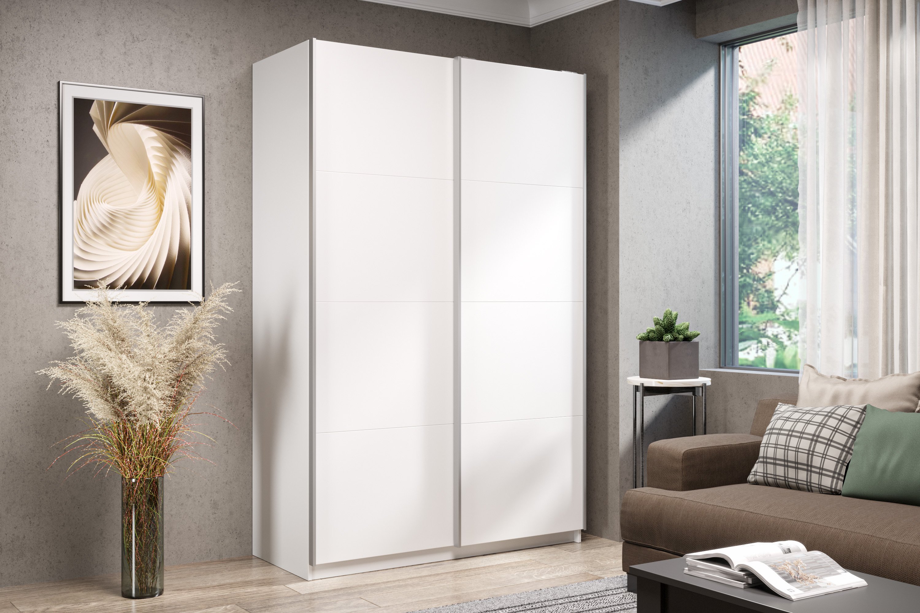 Шкаф-купе Smart 1222 2х дверный (фасады ЛДСП) профиль серебро (Белый)
