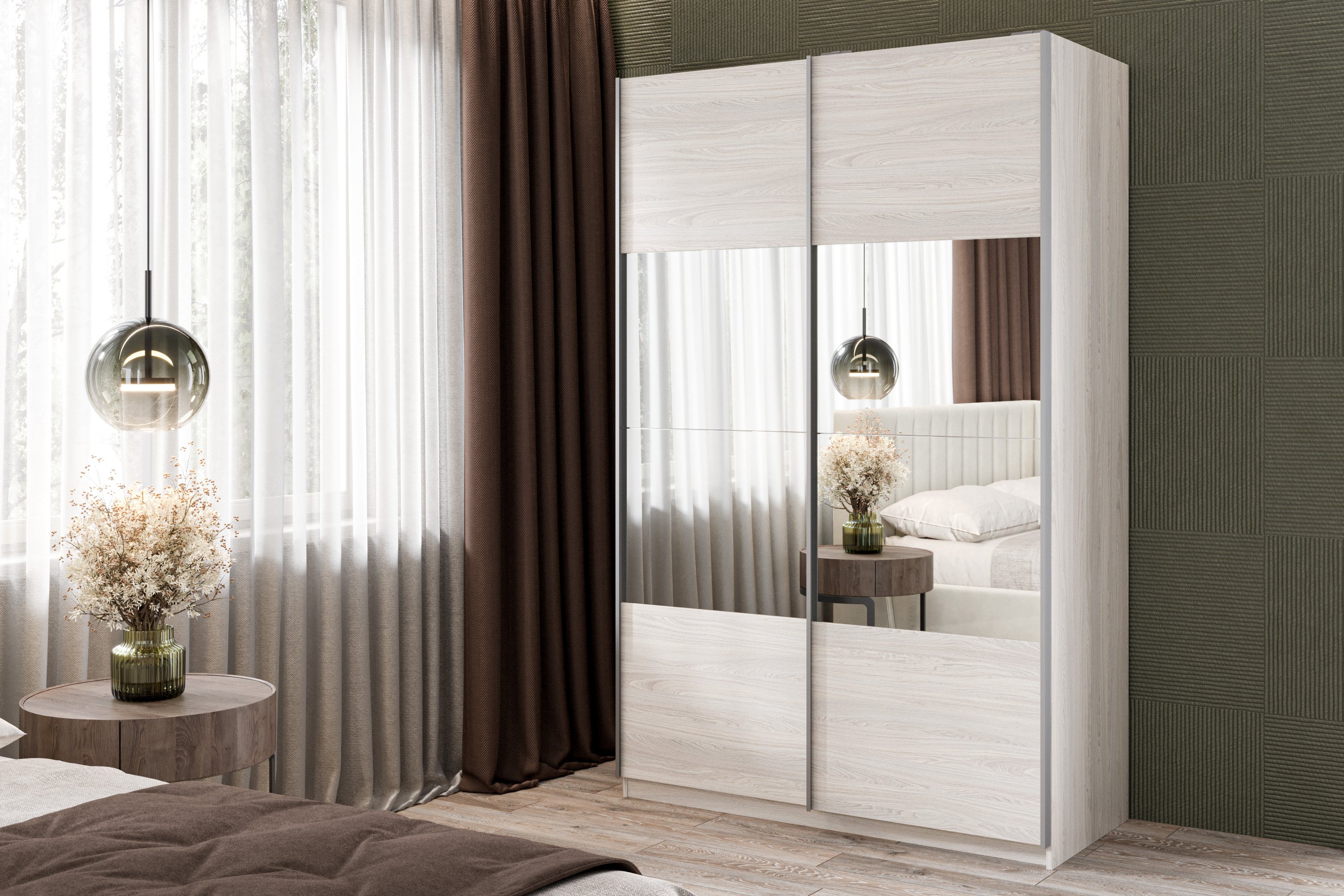 Шкаф-купе Smart 1424 2х дверный (фасады ЛДСП/зеркало) профиль серебро (Ясень Анкор светлый) Код I0000411283