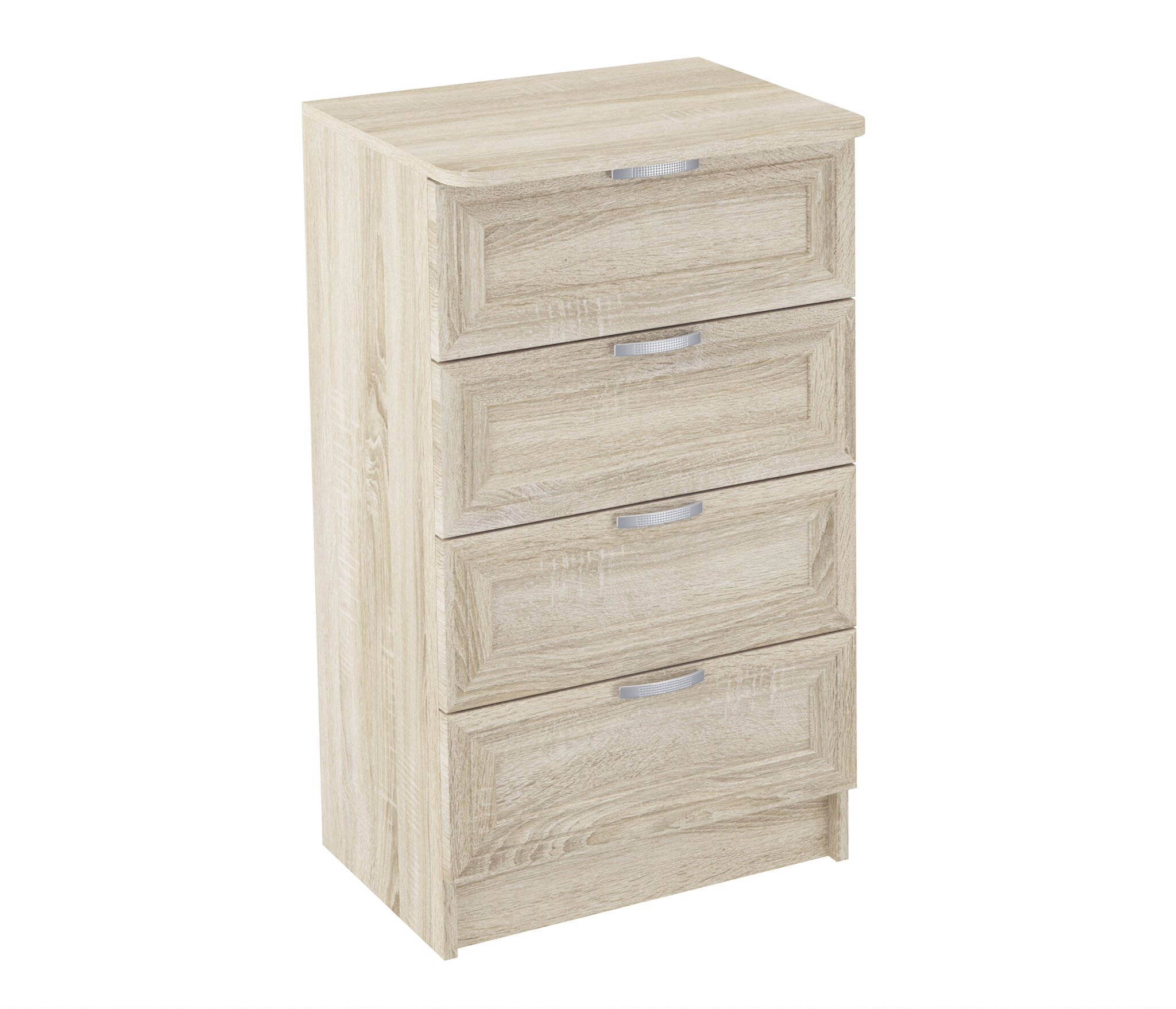 Комод ВС 500 благодаря не большой ширине 52 см,удачно разместится даже в маленьком помещении.Тем не менее,4 выдвижных ящика,позволяют разместить множество вещей.Корпус ЛДСП,фасады рамочные МДФ.Производитель оставляет за собой право менять фурнитуру.