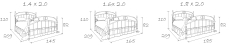 Размеры спального места (ДхШ) 2000х1800. Высота изножья 820 мм.