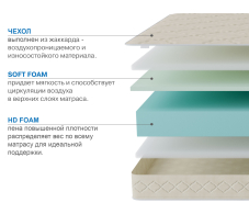 Беспружинный матрас отличается тем, что его структура позволяет точнее повторять контуры тела спящего, в отличие от пружинных матрасов, в которых точность подстройки ограничена диаметром пружины. В данном матрасе используется два вида современной пены, одна из них обладает средней жесткостью и принимает на себя все нагрузки, вторая пена обладает большей плотностью, но при этом она мягче, что придает одной сторон уникальные свойства, обусловленные сочетанием этих пен. Матрас очень легкий и подойдет для кроватей с подъемным механизмом, а также отлично ляжет в кровати с не высокими бортами. Может использоваться в детских или молодежных кроватях. Обращаем ваше внимание, что матрас и наматрасник отвечают за правильное положение позвоночника во время сна, но за шейный отдел позвоночника отвечает подушка, а не матрас, поэтому крайне важно не только правильно подобрать матрас, но и подушку, чтобы сон стал максимально комфортным и полезным. Рекомендовано использование вместе с защитным чехлом Aquastop. |