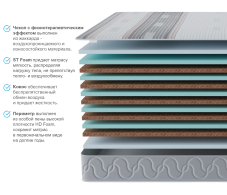 Одна из пластей данного матраса изготовлена из ткани в которую встроены магнитные полосы. Магнитное излучение аналогично тому, которое используется в кабинетах физиотерапии, но гораздо слабее по интенсивности. Благодаря этому, такой матрас обладает общим физиотерапевтическим эффектом, замедляющим развитие хронических заболеваний суставов и опорно-двигательного аппарата, дополнительным эффектом, которым обладает такой матрасс является нормализация фаз сна, а именно увеличение продолжительности фазы глубокого сна, а также он сокращает время засыпания. Суть системы заключается в том, что люди проводят во сне достаточно много времени, которым можно воспользоваться дополнительно. В обычной жизни, сколько времени каждый из нас готов потратить на посещение физиотерапевта? В худшем случае после травмы 10 посещений по 15 минут. А в случае сна на таком матрасе, каждый получает регулярные процедуры, с гораздо меньшим разовым эффектом, но накопленным итогом, при регулярном использовании, в течение нескольких месяцев общий эффект будет на много больше. Данная ткань прошла все испытания и абсолютно безопасна для всех, и для детей, и для техники. Чтобы убедиться самим, в наличие данных свойств, достаточно скачать в свой телефон любое приложение, которое позволяет измерять магнитное поле Measuring Tools, Tesla Meter или любую другую, прислонить телефон* к пласти матраса и поводить им в разные стороны. Вы увидите изменения графика интенсивности магнитного поля, и конкретные цифры показывающие силу магнитного поля, эта информация пригодится самым пытливым и въедливым покупателям, которые смогут проверить достоверность информации используя, интернет. *в телефоне должен быть датчик Холла, наличие данного датчика можно проверить в описании своего телефона на любом из сайтов ( в большинстве современных моделей он есть). Отличный выбор для людей с весом выше среднего. Это жесткий беспружинный матрас, в состав которого входят как искусственные, так и натуральные материалы. В качестве наполнителя матраса используются 5 слоев латексированной кокосовой койры. Это натуральный материал на основе кокосового волокна, пропитанного натуральным латексом, а также листы высокоэластичной пены. Оба материала жесткие, упругие и очень долговечные. При этом матрас подходит для кроватей с подъемным механизмом. Это идеальный матрас для людей желающих поправить здоровье, улучшить сон и уменьшить боли в суставах. При выборе матраса следует помнить о том, что любой матрас не отвечает за правильность положения головы и шеи, их здоровье зависит от правильно подобранной ортопедической подушки. Для увеличения срока службы матраса рекомендуется его использование с защитным чехлом AquaStop. |