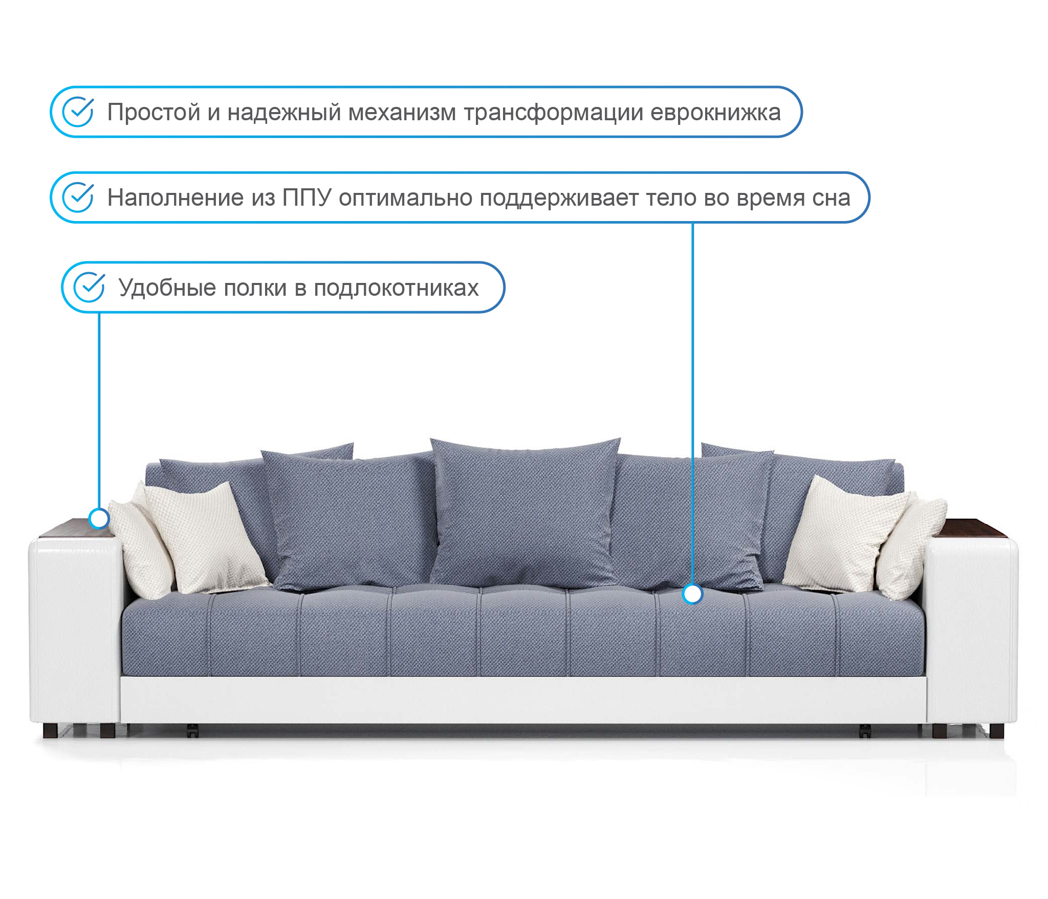 Отзывы о Столплит Диван-кровать Дубай еврокнижка,велюр+экокожа Синий