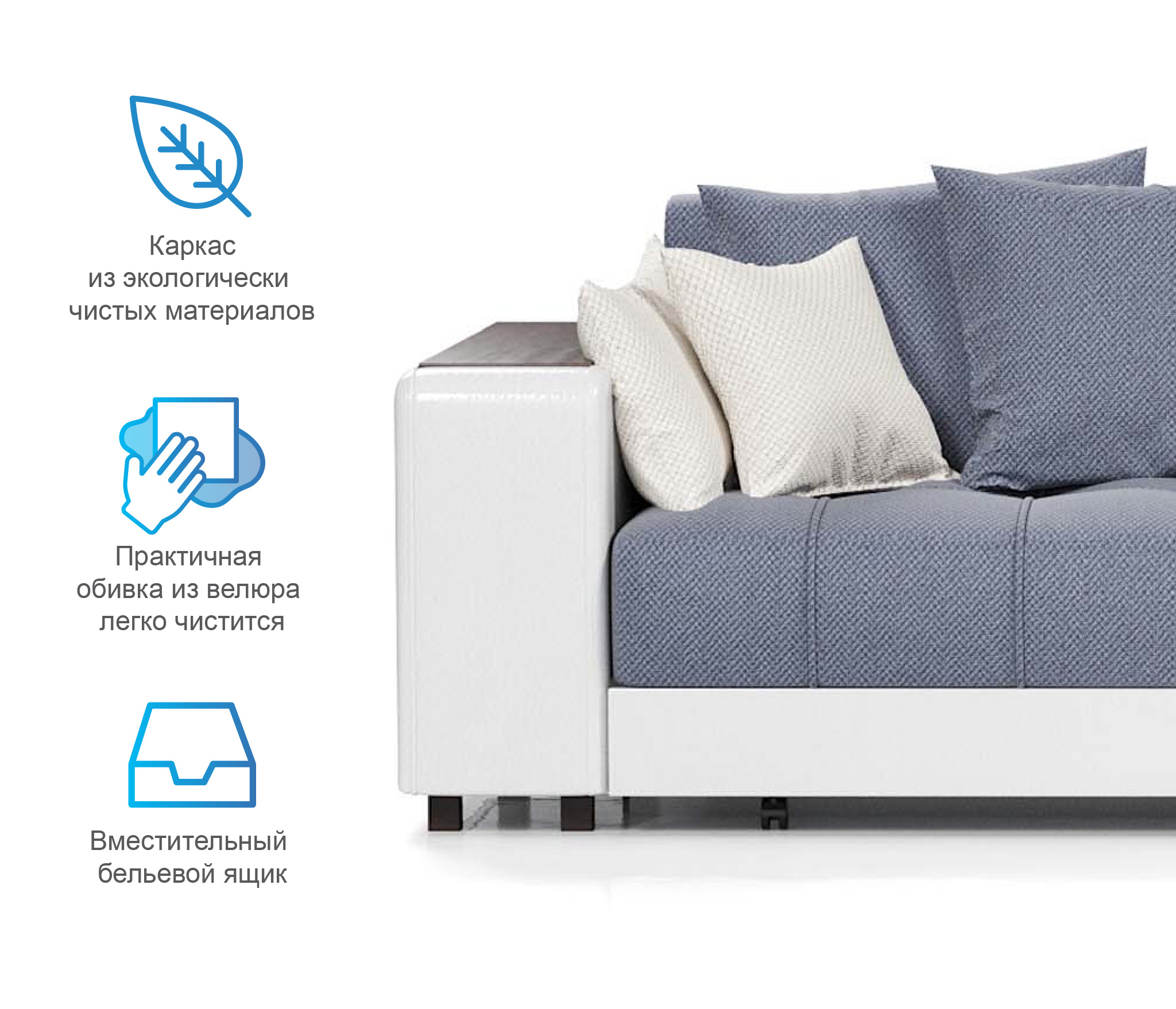 Наполнение подушек из холофайбера (материал одновременно упругий и легкий, сохраняет долгое время форму:+ 5290 руб)