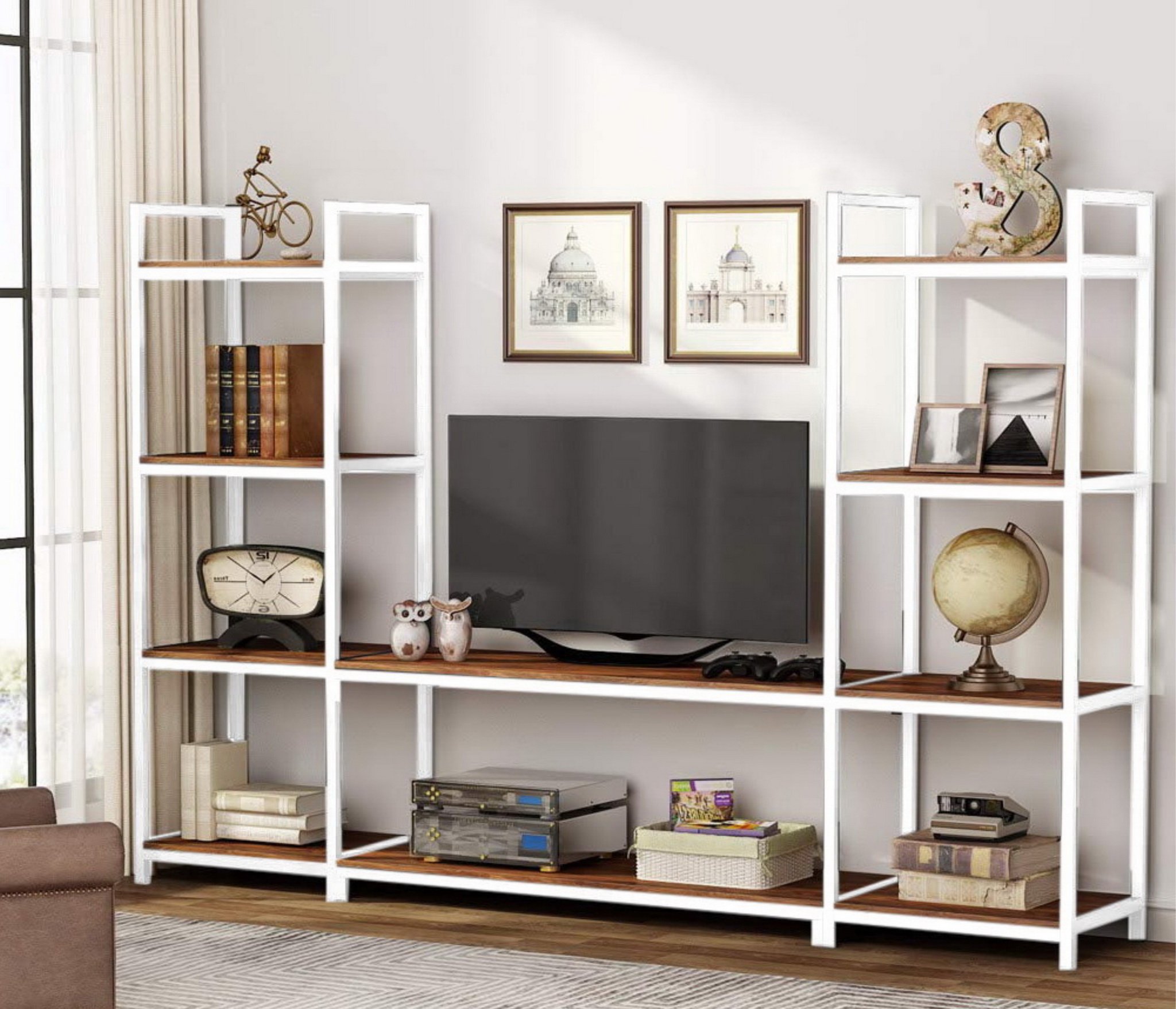 глянцевые фасады, С полками, С ТВ тумбой , со стеллажом
