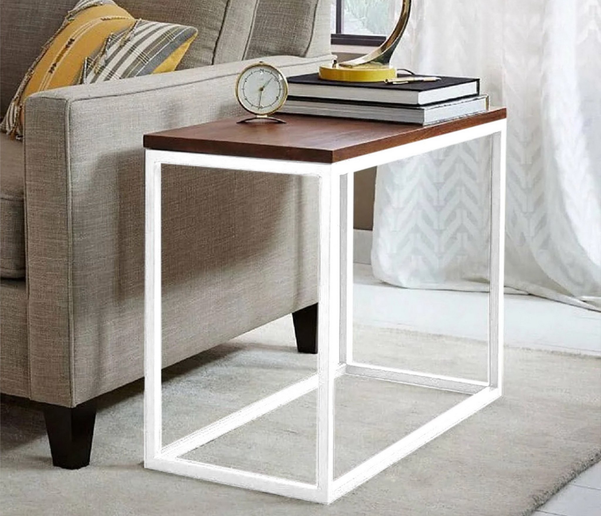 Каркас: профильная труба 20х20 мм.Прочное полимерно-порошковое покрытие черного, белого и серого цвета Дерево: массив сосны 20 мм, покрытое специальным маслом для мебели, цвета на выбор: бесцветный, белый, серый, махагон, орех, морёный дуб, черный, клён, черный графит, голубой графит, темное золото графит, золото графит.