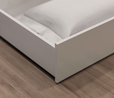 Ящик легко выдвигается и скрывается под кроватью, не занимая лишнего места. Он представляет собой удобное решение для хранения, позволяющее максимально использовать пространство в спальне.