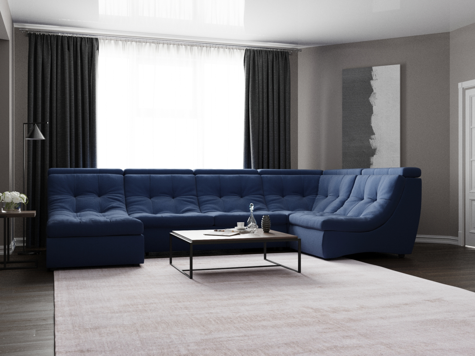 Отзывы о Столплит П-образный диван Монако-4 ППУ, велюр Синий