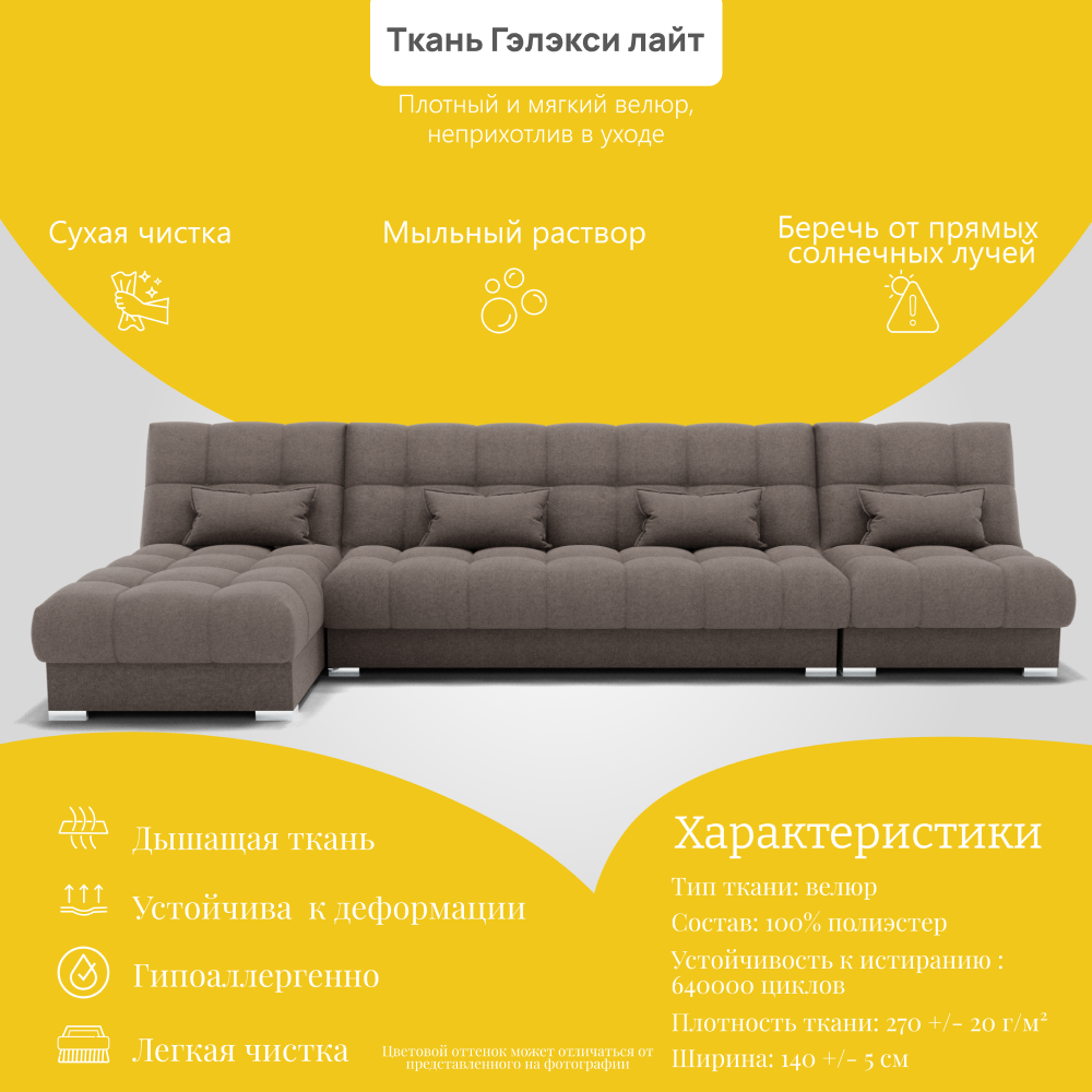 Отзывы о Столплит Угловой диван Фиеста-3 НПБ, велюр Коричнево-серый