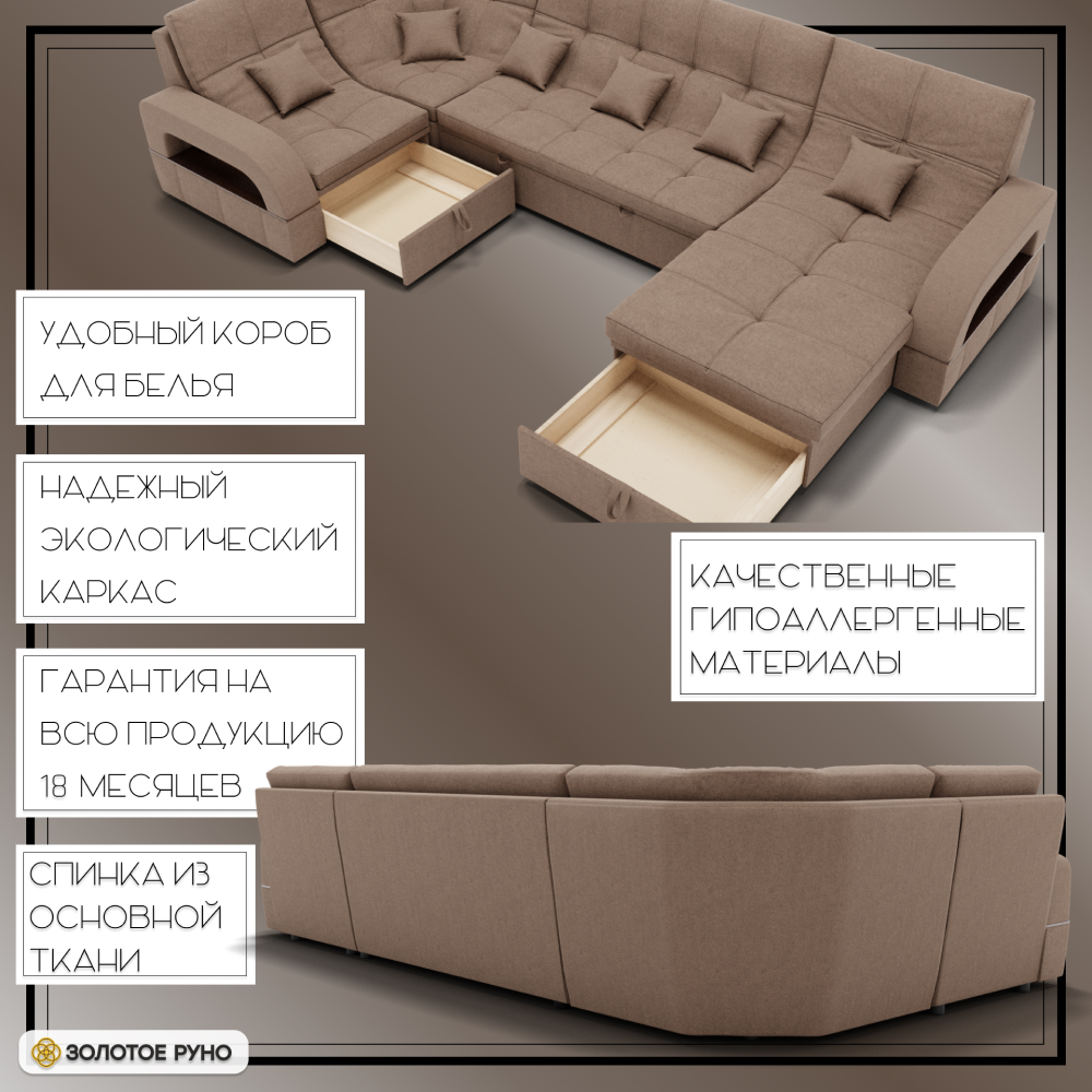 Отзывы о Столплит П-образный диван Майами-4 ППУ, велюр бежевый/коричневый