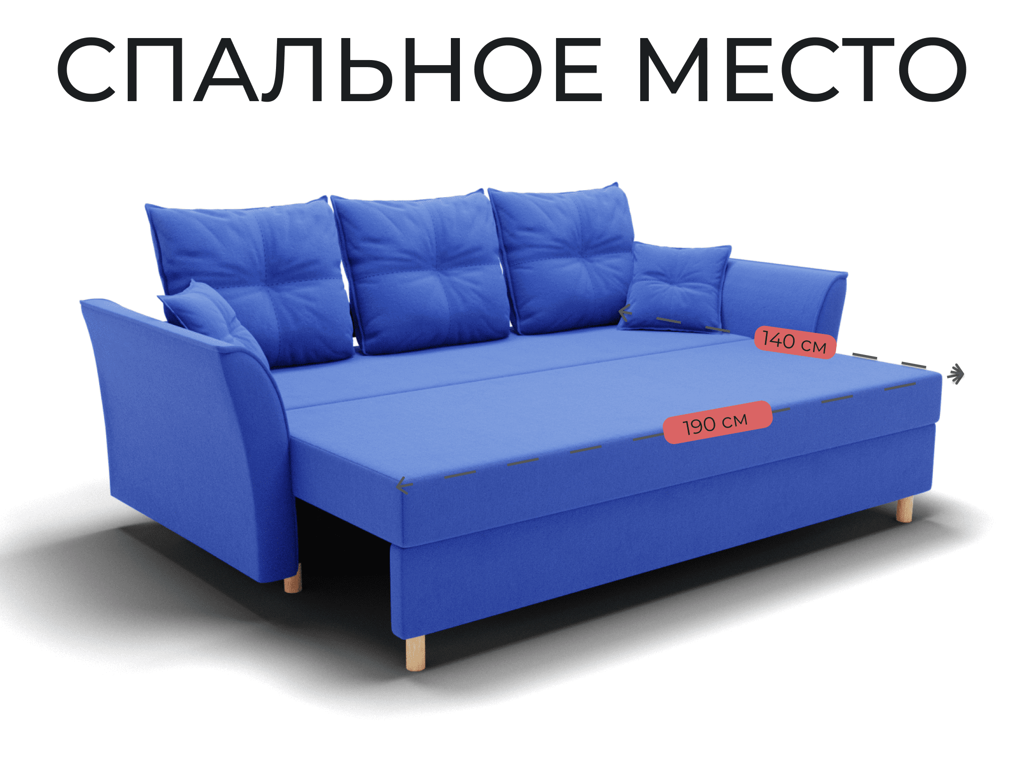Спальное место: ширина - 140 см, длина - 190 см. Максимальная нагрузка - 250 кг.
