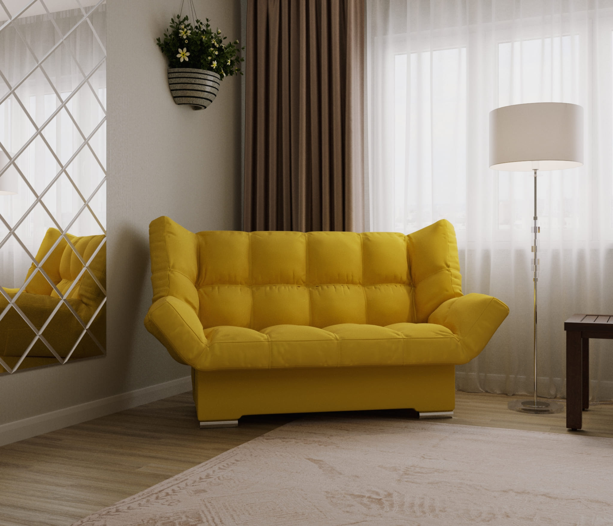 Современный и удобный диван-кровать с тремя возможными положениями вместо двух. Он отлично подойдет для современного интерьера и станет прекрасным местом для размещения гостей или друзей. В собранном виде может служить как место для отдыха или сна, а в полностью расправленном – как полноценное спальное место.
